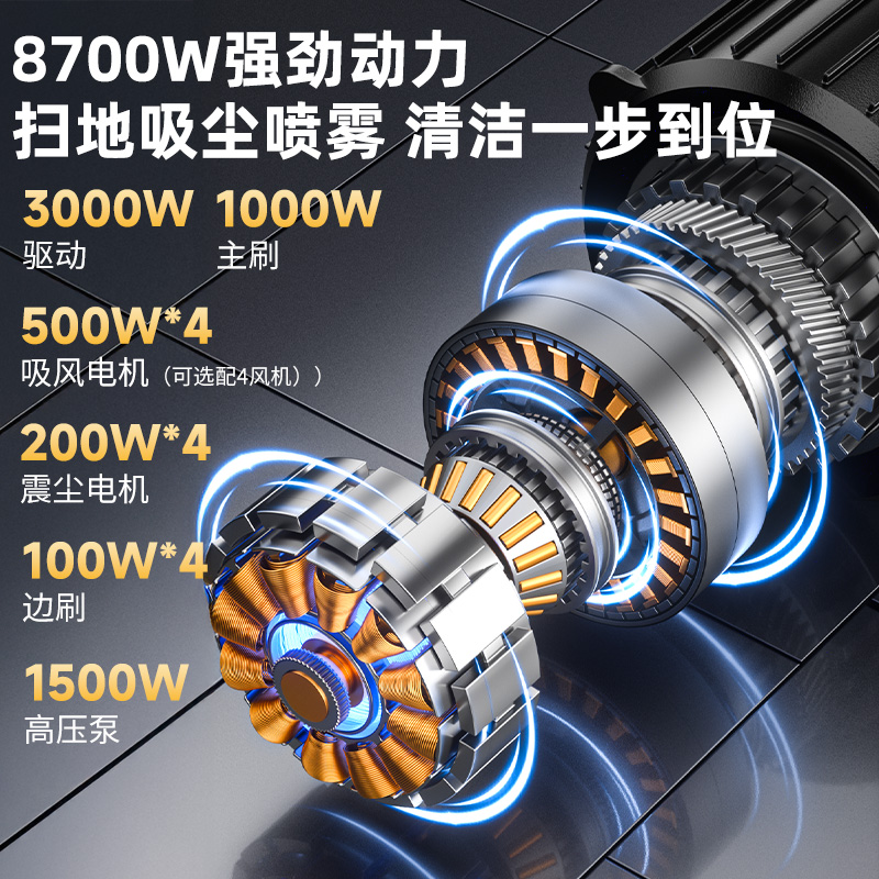 掃吸灑三合一,24000㎡/h高效清掃,智能操控清潔,48V/150Ah電池容量,智能照明大燈,雙碟剎制動(dòng)