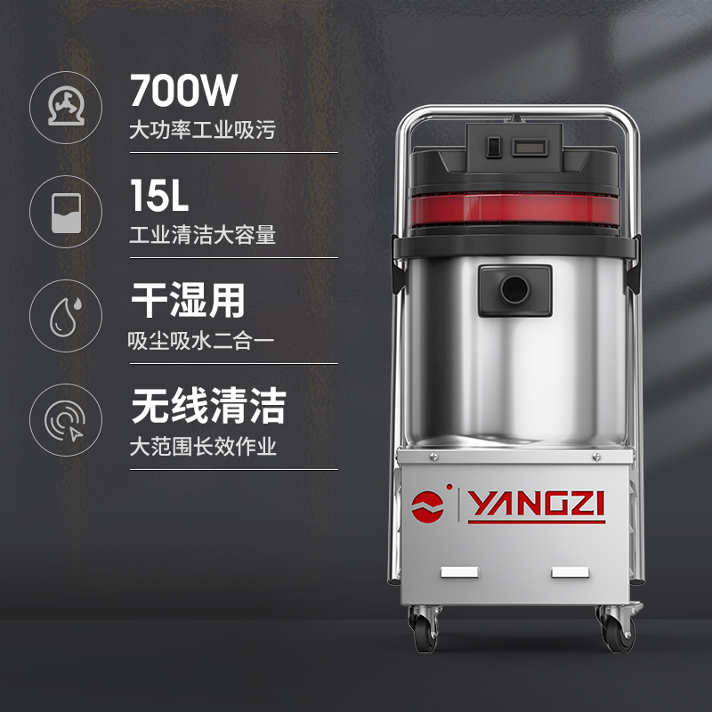 揚子C1/700W工業吸塵器適用場景廣泛干濕兩用,多重過濾遠離二次污染,雙電機散熱吸力更持久。