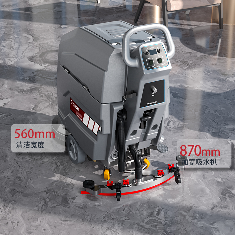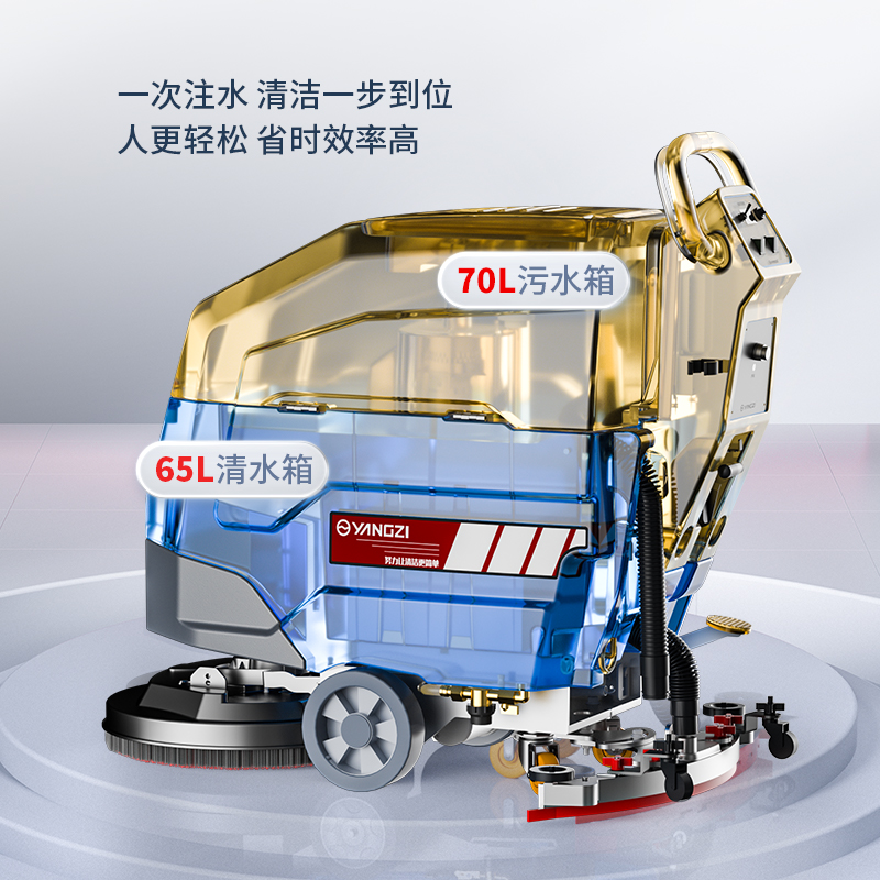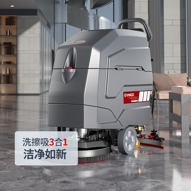 揚子YZ-X4全自動手推式洗地機有普通款和自走款兩種型號,可以實現對多種地面材質的清洗需求,實現高速轉動清掃,進行深層油污清理,達到快速吸干的效果,清潔效率更高,并且整體操作方