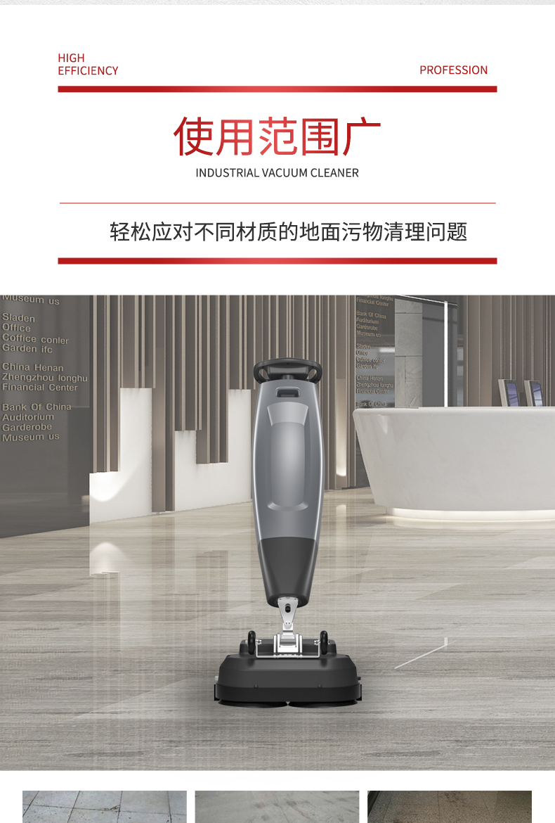 揚子酒店式洗地機YZ-X430機身小巧輕便,可輕松轉移,無懼門檻、樓梯、臺階。清潔范圍更廣泛。機身設計為旋轉活動結構,使用時可自由旋轉,讓清潔更輕松,讓污漬無處可逃。輕松應對墻角、床底、桌底等細小角落。