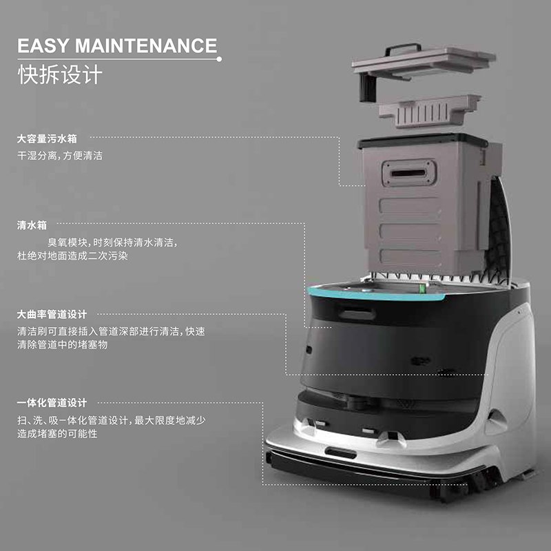 功能強(qiáng)大,掃地、吸塵、洗地、塵推、消毒、自清潔六大清潔工序,高度700mm,高度僅550mm,極致貼邊邊界自動識別,進(jìn)口靜音材質(zhì)噪音低質(zhì)55db